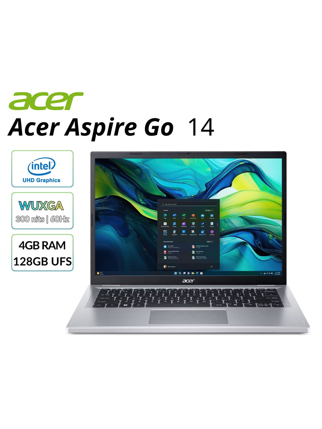 Acer Aspire Go 14 Laptop 14" WUXGA Intel N100 4GB RAM 128GB UFS UHD Graphics