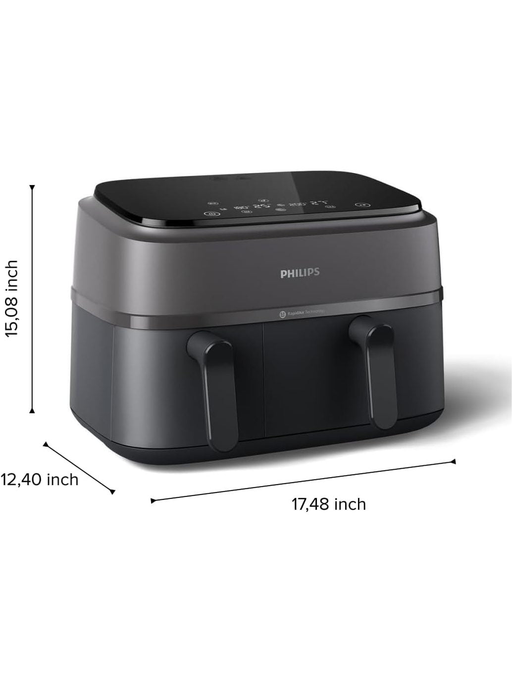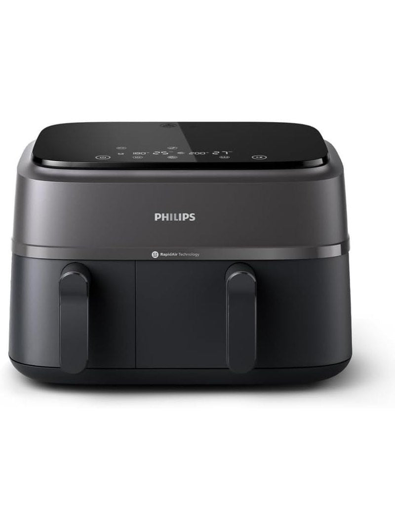 Philips Dual Basket Air Fryer 3000 Series, 8-in-1 functions, 9.5 Quarts, 2 Drawers, Auto-sync Cooking Time, 90% Less Fat, Rapid Air Technology, HomeID Recipe App, Dishwasher Safe, Black, (NA350/00)