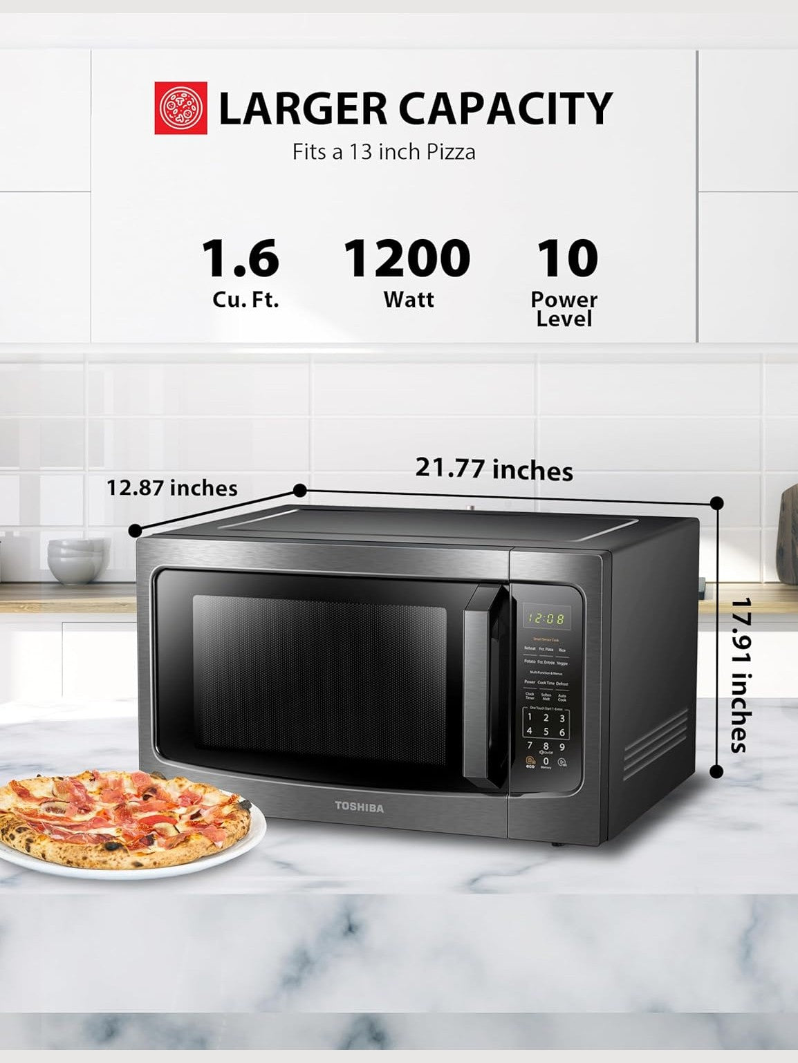 TOSHIBA ML-EM45P(BS) Countertop Microwave Oven with Smart Sensor and Position Memory Turntable, Function, 1.6 Cu.ft 13.6" Removable Black Stainless Steel, 1200W