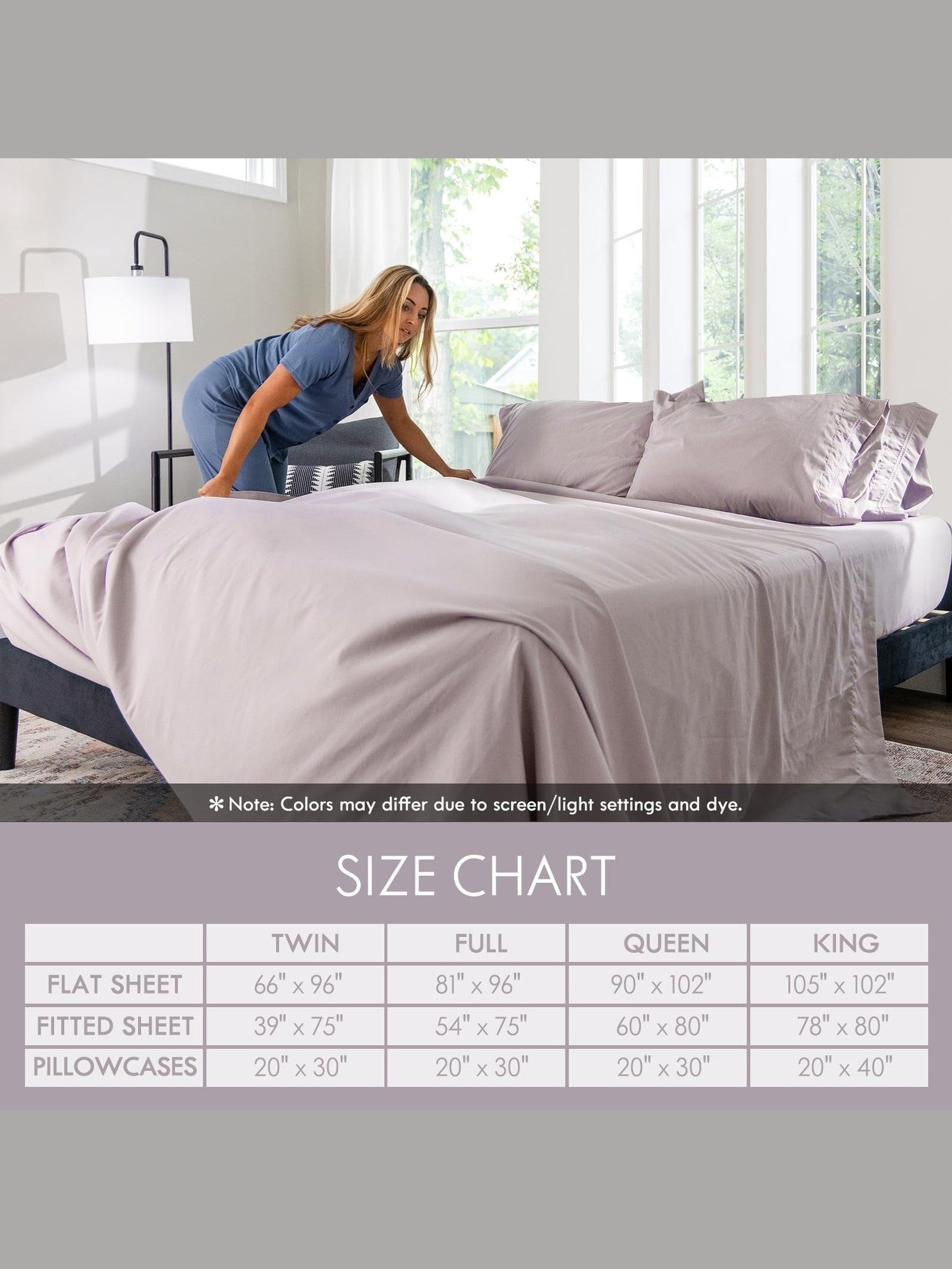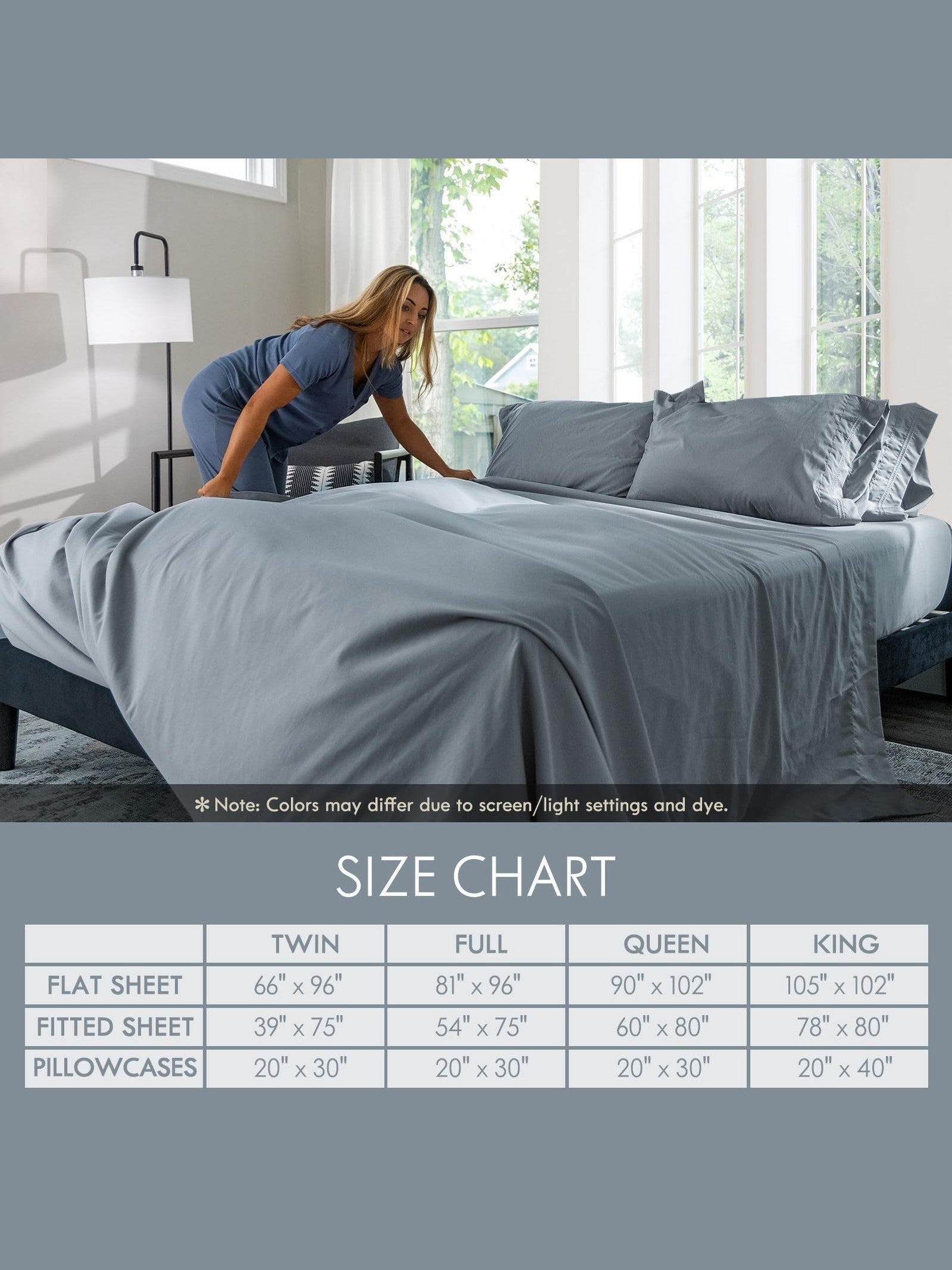 | Full | 6-Piece | 1 Flat Sheet, 1 Fitted Sheet, 4 Pillowcases |