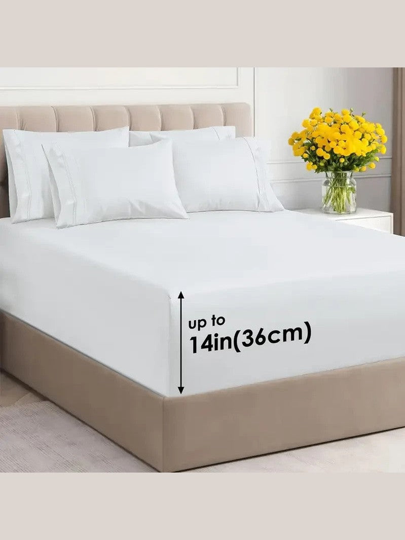 - Deep pocket fitted sheet fits mattresses up to 14"