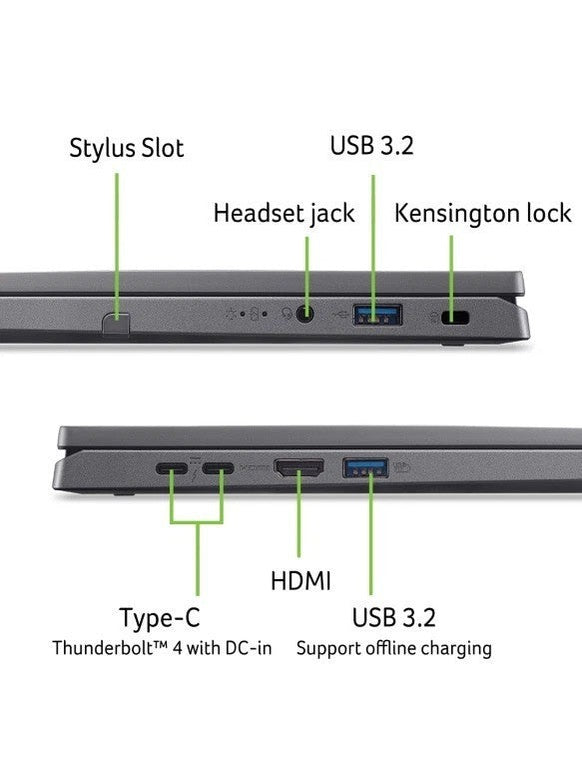 The Acer Aspire Spin 14 is a versatile convertible designed for users who need power, flexibility, and precision in one streamlined device. Dual USB4/Thunderbolt 4 ports provide high-speed connectivity for displays and accessories, while the backlit keyboard enhances usability in low-light settings.