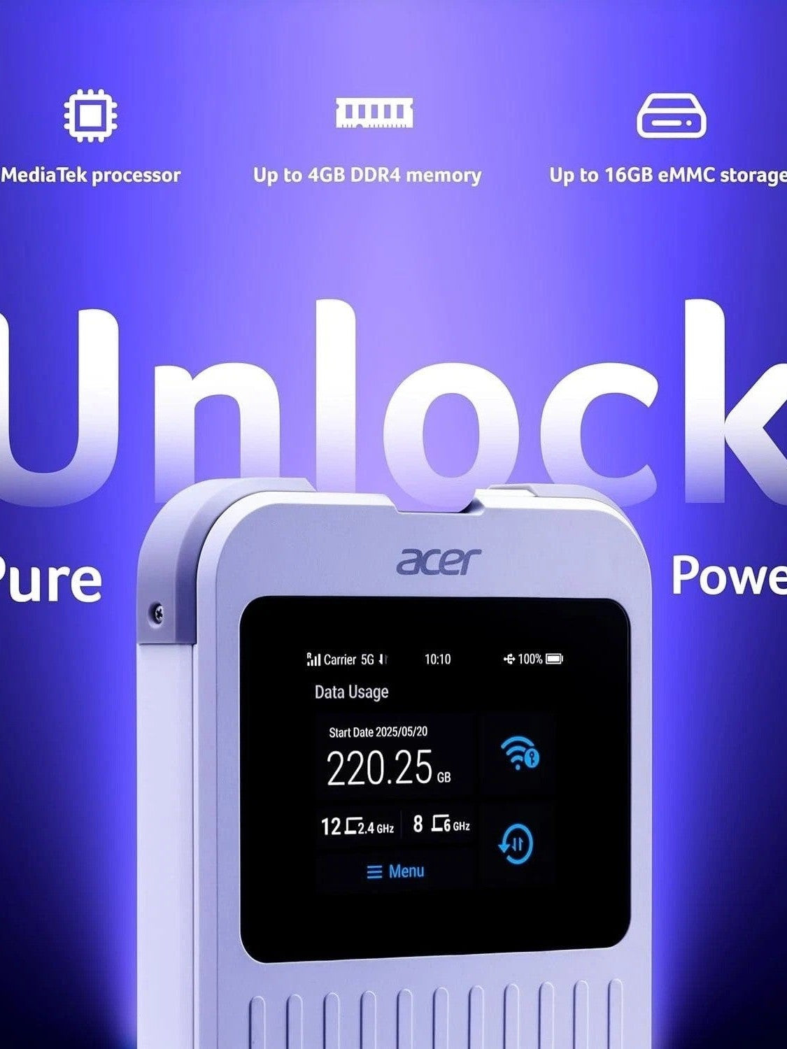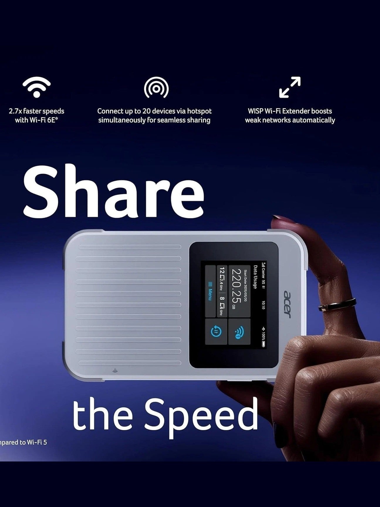 Acer Connect M6E 5G Hotspot | Secure Portable Wi-Fi Router for Travel & Work