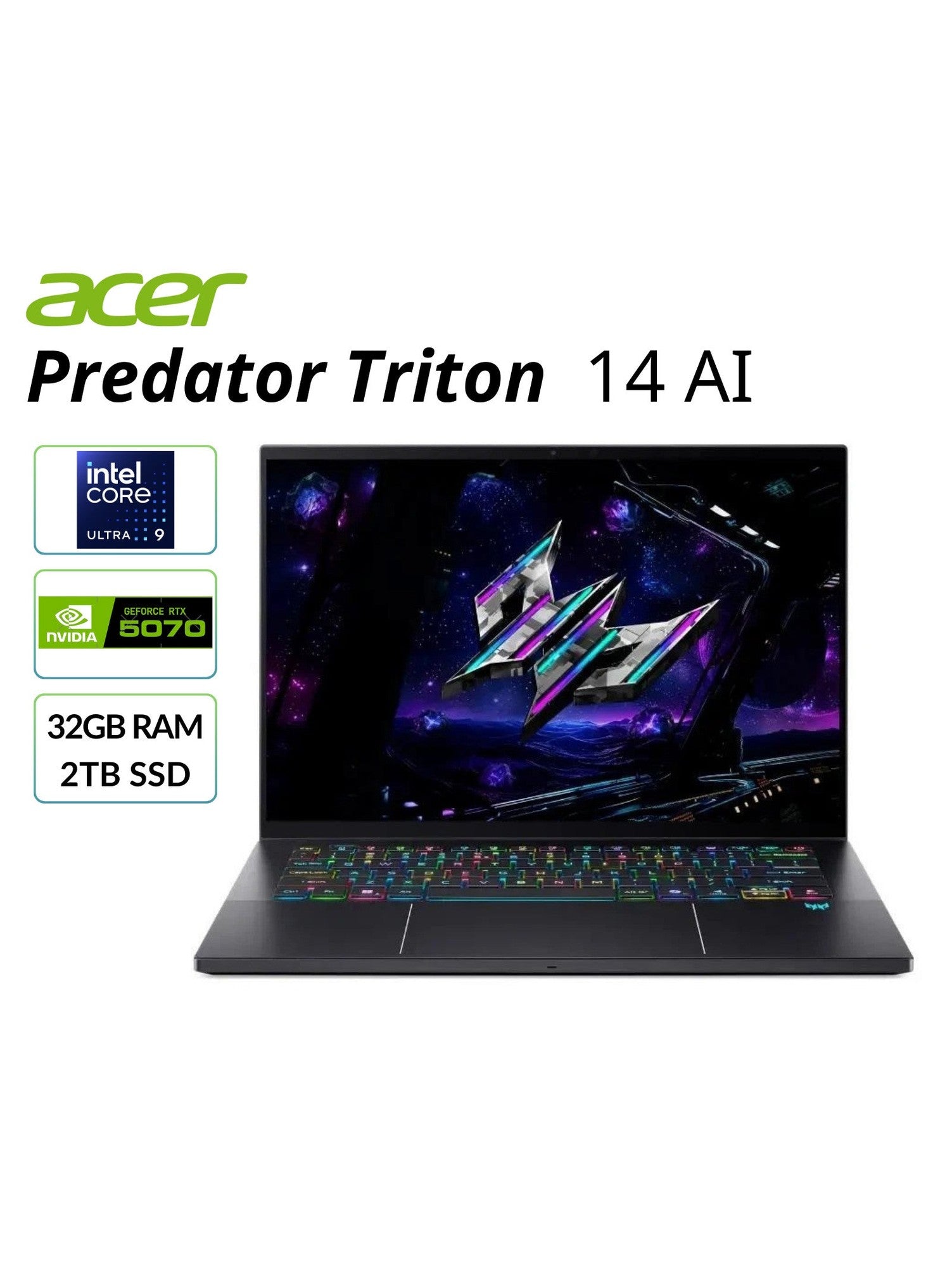 Acer Predator Triton 14 AI Gaming Laptop Touch Ultra 9 32GB RAM 2TB SSD RTX 5070