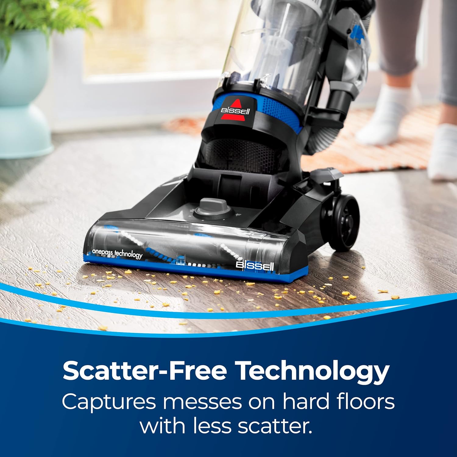 - SCATTER-FREE TECHNOLOGY. Captures messes on hard floors with less scatter.