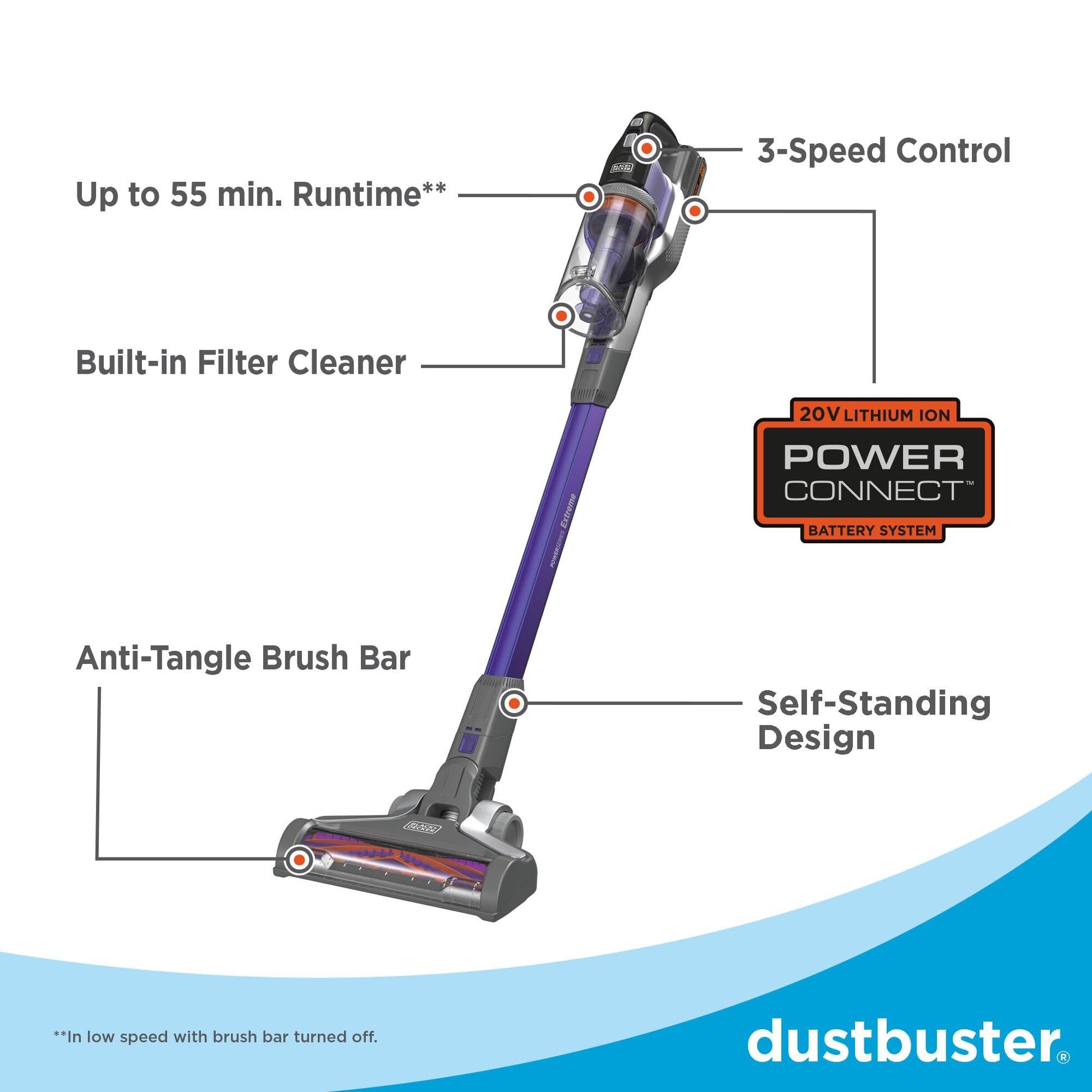 BLACK+DECKER Pet Hair Vacuum, Cordless Vacuum Cleaner Pet Hair, Up to 55 Minutes of Runtime, Interchangeable Floorhead, Maximum Suction, Multi-Surface, Light Weight, Powerseries Extreme (BSV2020P)