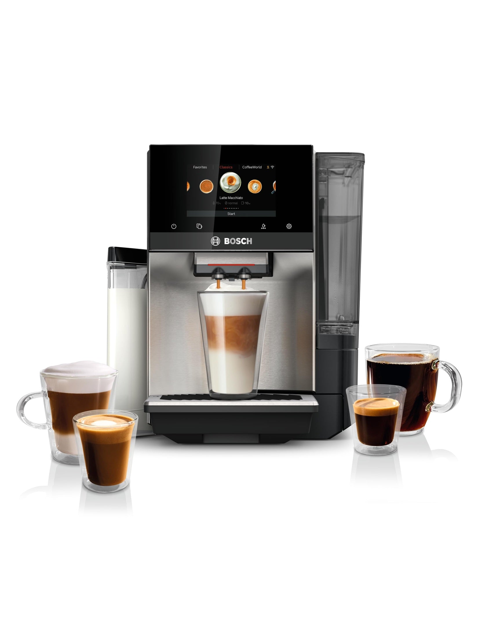 Bosch TQU60703 800 Series VeroCafe Fully Automatic Espresso Machine with Home Connect, 36 Beverage Varieties with Coffee World, Cup Warmer, Double Cup, Integrated Milk Container, in Stainless Steel