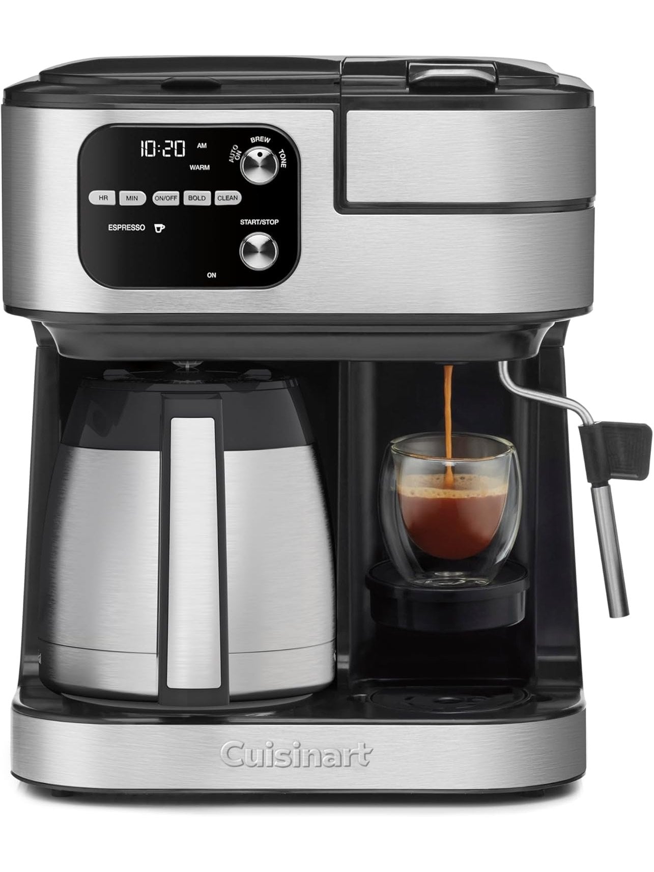 • 4-IN-1 BARISTA BAR: The Cuisinart Coffee Center Barista Bar 4-in-1 Coffee Maker lets you enjoy up to 12 cups of coffee (cup equals approx. 5 oz. (varies by brewing technique) and single-serve cappuccinos, lattes, and espresso.)