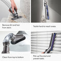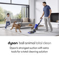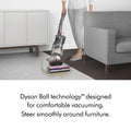 The best cleaning performance of any upright de-tangling vacuum.¹ The Dyson Ball Animal 3 Extra deep cleans your whole home- and your pet. The vacuum tackles tough tasks easily, making it ideal for pet owners and parents. The Groom tool removes loose hairs, dead skin, and allergens directly from your pet- before they spread them around your home.² De-tangling technology automatically clears wrapped hair from the brush bar as it cleans. With Ball ™ technology and 3 cleaning modes, the Dyson Ball Animal 3 Extra smoothly navigates around furniture and obstacles with a simple turn of the wrist, for precise cleaning. With no loss of suction, 5 Dyson-engineered accessories, and up to a total of 50ft reach, the vacuum gets up high, down low and everywhere in between for a whole-home deep clean. Comes with a 5-year limited warranty and lifetime Dyson support. Register your machine on the MyDyson™ app for personalized machine guides, maintenance and support.