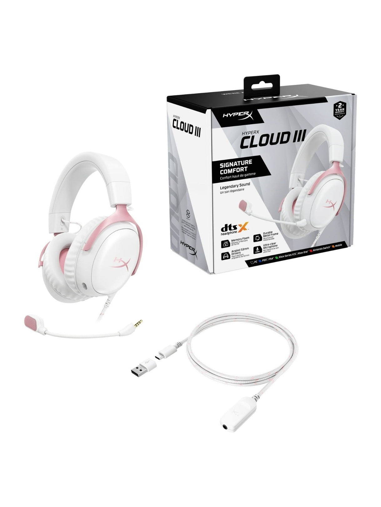HyperX Cloud III WIRED Gaming Headset PC PS5 Xbox Series X|S Angled 53mm Drivers