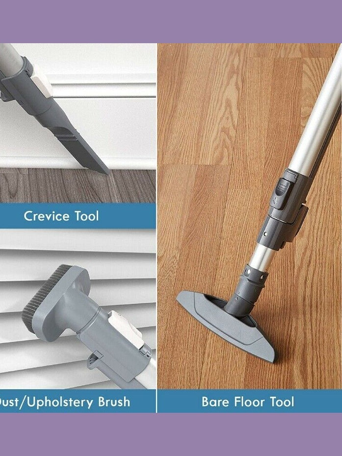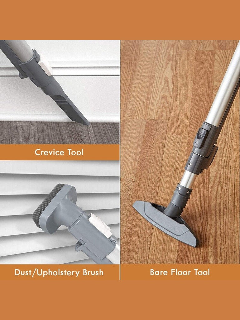 • [3 ATTACHMENTS]: Dusting brush, crevice tool and bare floor tool for convenient cleaning transitions, store on the vacuum