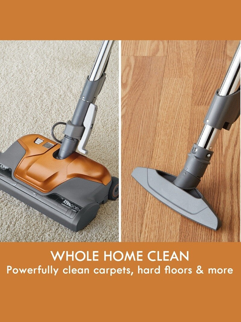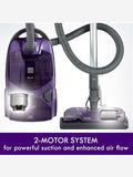 • [POWERFUL CLEANING]: 2-motor system excels in suction strength and includes 2 floor nozzles with exclusive Pop-N-Go floor brush. 3 additional attachments: crevice tool, dusting brush and bare floor tool
