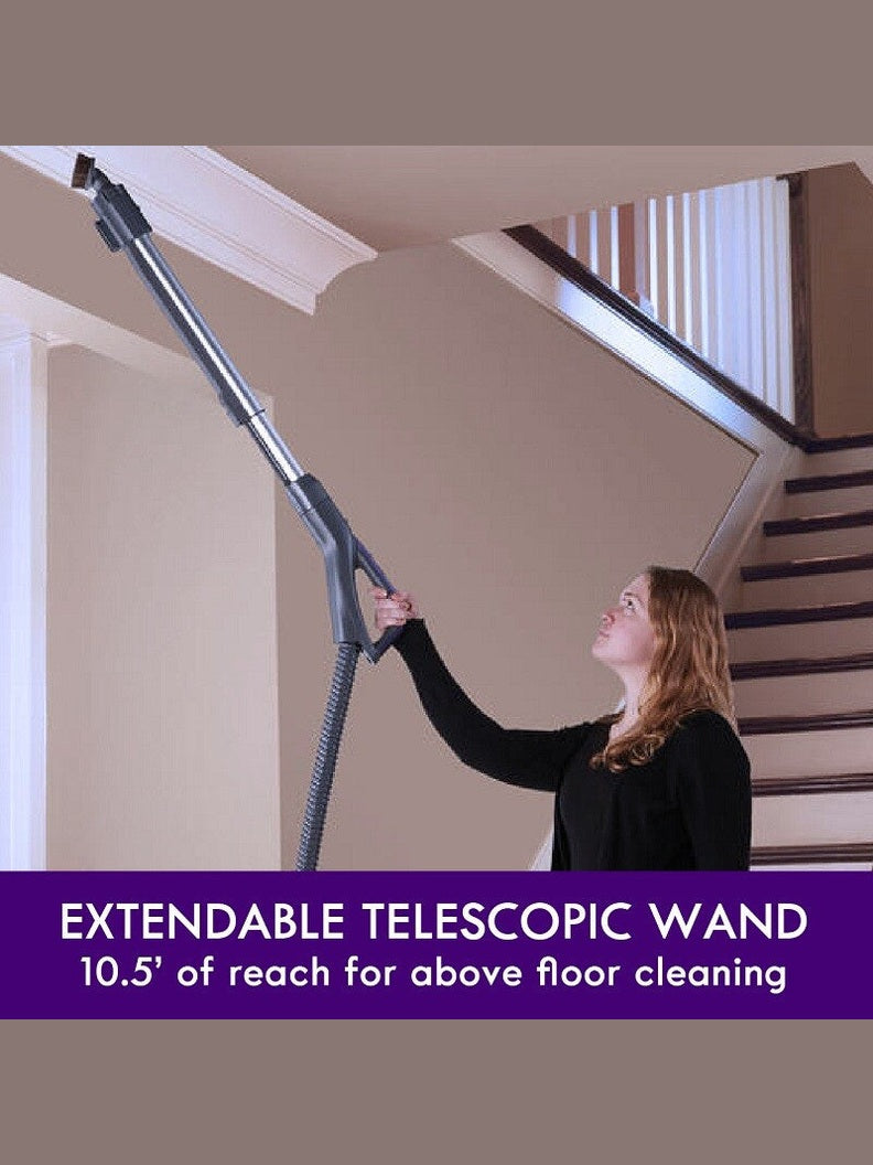 • [POWERFUL CLEANING & ALUMINUM TELESCOPING WAND]: 2-motor system excels in suction strength. 4 height adjustments provide optimal airflow and cleaning efficiency for any surface. Extendable lightweight wand lengthens to 9.5 feet of-reach to access difficult areas. Detachable handle is perfect for cleaning furniture, car interiors, and tight spaces