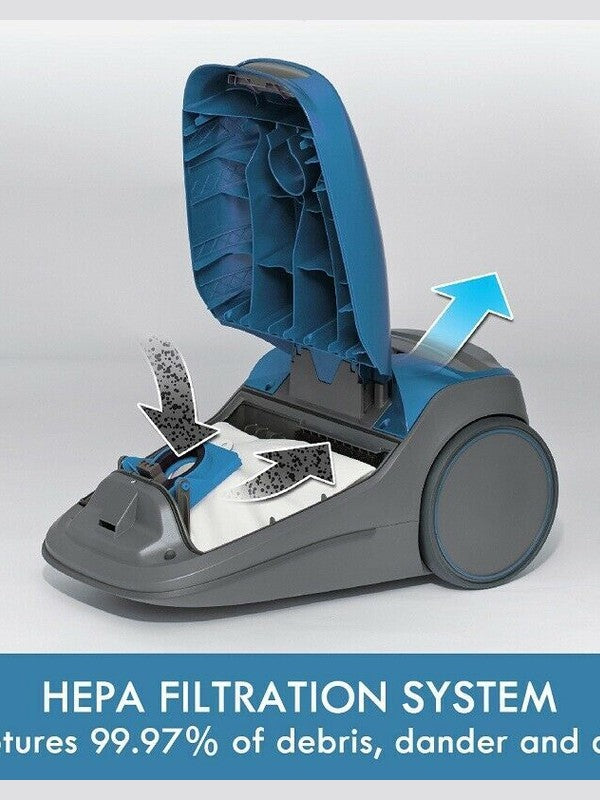 • [HEPA FILTER SYSTEM]: Enhanced HEPA filter system traps 99. 97% of debris, trapping dander and dust inside the vacuum reducing allergy-induced pollutants in the room
