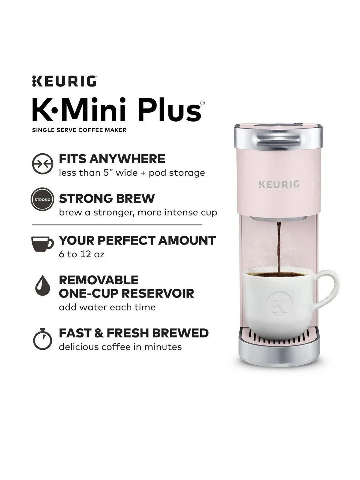 Keurig K-Mini Plus Single Serve K-Cup Pod Coffee Maker - Dusty Rose - NEW™