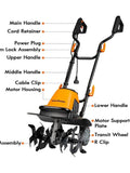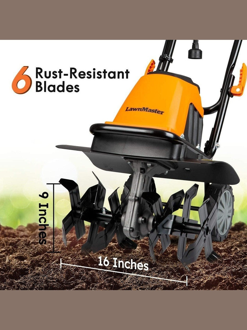 LawnMaster 16-Inch Electric Tiller 10-Amp Cultivator Foldable 6-Steel Blades