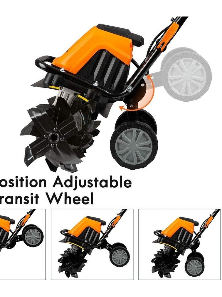 Lawnmaster TE1016M Electric Tiller Features Powerful 10-amp motor and 6-steel blades cuts through the roughest terrain. Runs at 280 RPM when free-spinning. This electric tiller provides a green, clean and efficient alternative to gas-powered tillers.