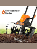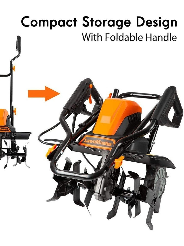 LawnMaster 18'' Corded Electric Tiller 13.5 AMP 6-Steel Blades Foldable Design