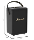 Bring the show on the road with tufton, the mightiest portable speaker from Marshall. Tufton packs 20+ hours of portable playtime, allowing you to go further, for longer. Bluetooth 5.0 technology Allows you to connect to a variety of wireless devices with a range of 30ft. Tufton is engineered as a 3-way system, producing sound from three separate drivers – a tweeter, mid-range driver and subwoofer. This configuration produces a clear and articulate sound across all frequencies. An additional mid-range driver is located on the rear of the speaker to give the listener a true 360° blumlein stereo sound experience. Echoing the legacy of rock ‘n’ roll, tufton has a solid metal grille that pays homage to the steel mesh grille found on many microphones and a guitar inspired carry strap for easy portability. An IPX2 water-resistant rating and flush mounted corner caps Make it an extremely rugged and durable speaker. Tufton is a behemoth of sound, Made for the open road.