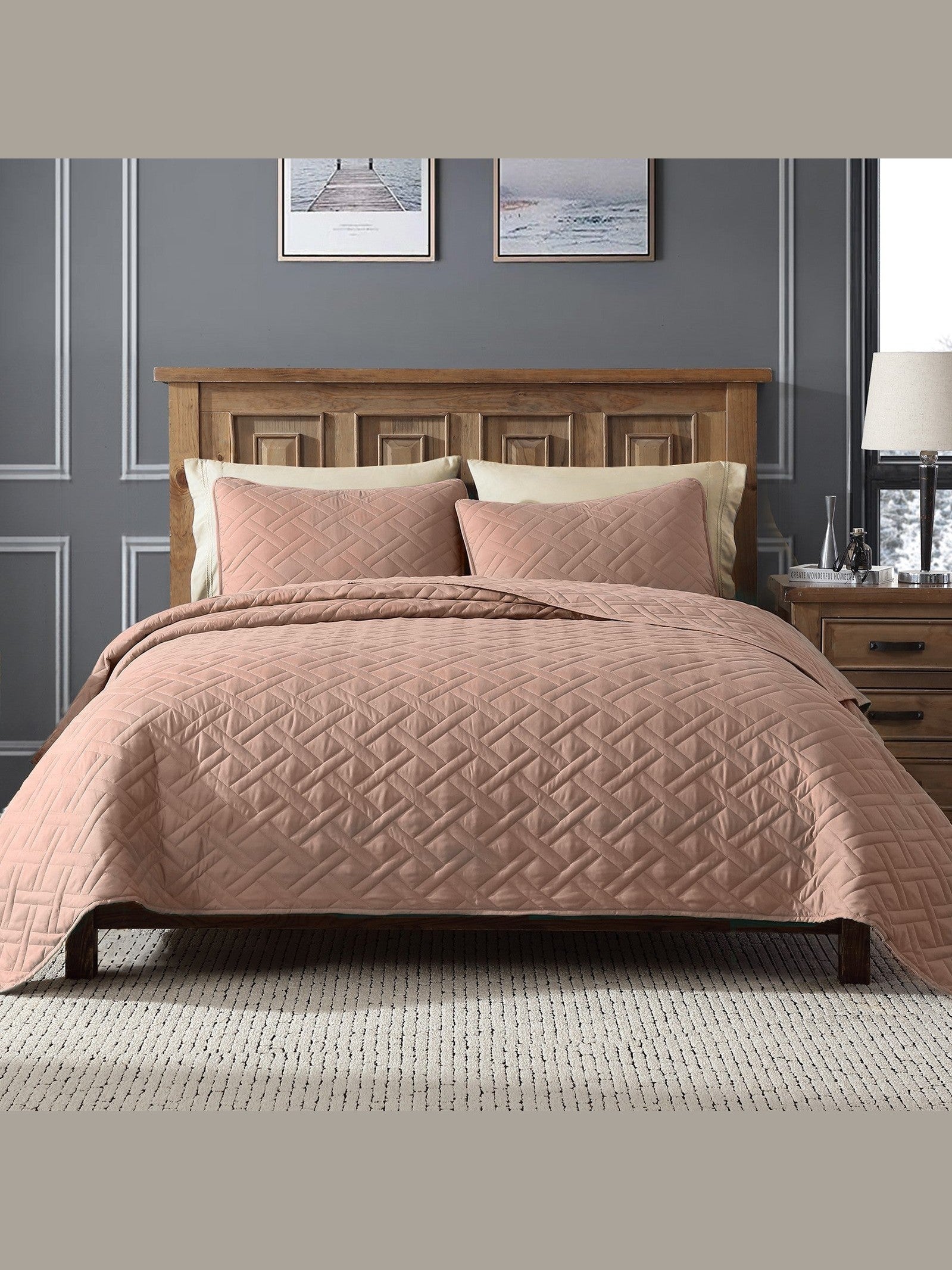 ClevaHome Embossed Quilt Set Embossed Quilt Detail Lightweight Quilt Texture Bedroom Style with Quilt Embossed Quilt Lifestyle All-Season Embossed Quilt Set