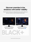 Samsung's Odyssey G30D Gaming Monitor features 180Hz refresh rate and 1ms response time (MPRT) which enables faster, exhilarating gameplay with ultra-smooth action and minimal blur. AMD Radeon FreeSync™ keeps the monitor and graphics card refresh rate in sync, reducing image tearing for seamless, smooth scenes. Black Equalizer allows you to adjust dark areas in games, letting you spot your enemies in even the darkest hiding nooks. Eye Saver Mode minimizes blue light and reduces irritating screen flicker for more comfortable gaming, and the 3-sided borderless design provides maximum space for bigger, bolder gameplay, enabling a precise dual-monitor setup. Features an ergonomic stand to adjust your monitor height for optimal comfort when playing for extended periods of time.