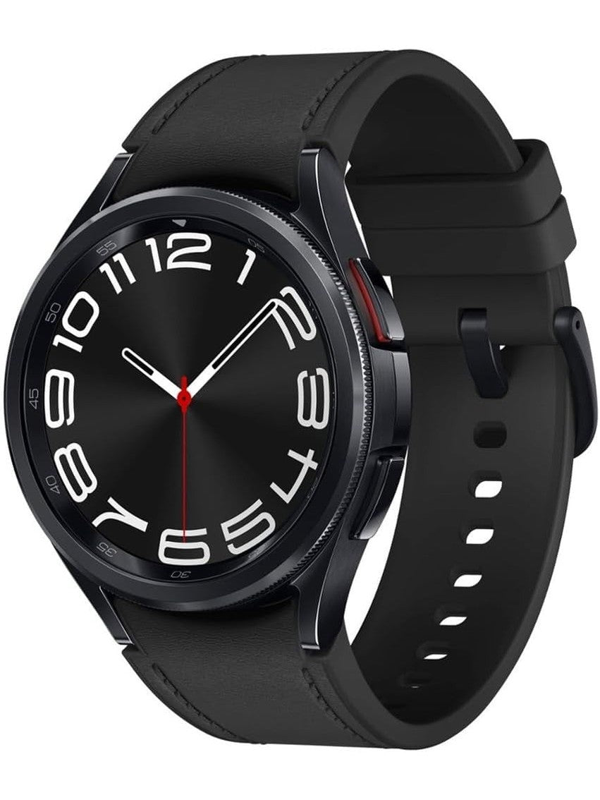 The Samsung Galaxy Watch6 Classic (SM-R955UZKAXAA) is a 43mm LTE smartwatch featuring a Black Stainless Steel case and a Black Leather Band. 43mm LTE smartwatch with rotating bezel design. Case Size: 43mm.