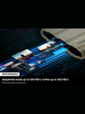 4Performance may vary depending on host configuration. To reach maximum read/write speeds of up to 1,050/1,000 MB/s, respectively, the host device and connection cables must support USB 3.2 Gen 2 and the UASP mode must be enabled.