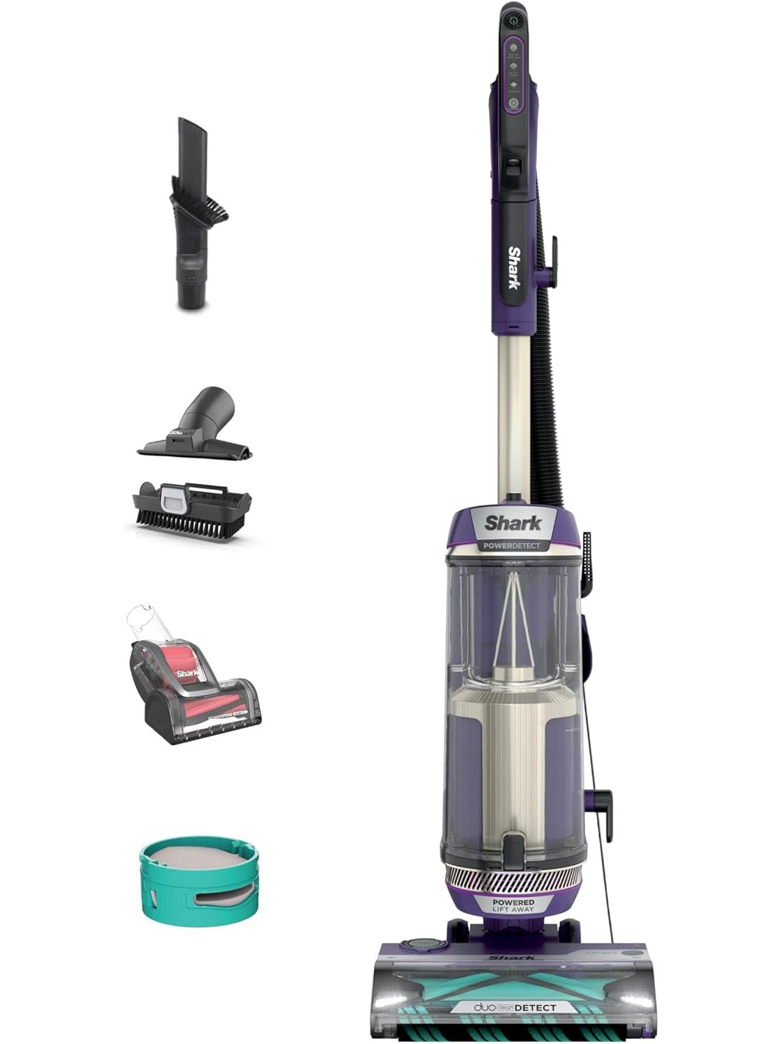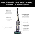 The Shark POWERDETECT upright vacuum combines the most powerful suction, ultra-powerful hair pick-up and Shark's most advanced cleaning technology to deliver the best overall cleaning of any vacuum*. It features the new DuoClean Detect nozzle which includes two brushrolls and a network of proprietary sensors that automatically sense and react to hidden dirt by boosting suction and brushroll speed when you need it most across floor type, corners, edges, and it even detects direction for powerful suction in forward and reverse to grip and capture more dirt, debris & hair than the original DuoClean nozzle. Large piles, fine dust, and & pet hair are no match for DuoClean Detect. Shark’s Odor Neutralizer Technology guards against bad odors inside your vacuum to help freshen your home. Plus, Anti-Allergen Complete Seal with HEPA filtration seals and traps 99.99%** of dust, dander, and allergens*** inside of the vacuum, and out of the air you breathe. For above-floor cleaning, you can Lift Away the detachable pod and take your cleaning to stairs, furniture, windowsills, and more. In addition, when you lift away the pod, you transform your vacuum into a stick, for easy motorized cleaning under furniture. *Based on a geomean of combined tests -IEC62885-2 Sec 5.3 FWD, IEC62885-2 Sec 5.3 REV, IEC62885-2 Sec 5.5 FWD, IEC62885 Sec 5.5 REV vs. upright market" **Based on ASTM F1977, down to .3 microns. ***Allergens refers to non-living matters.