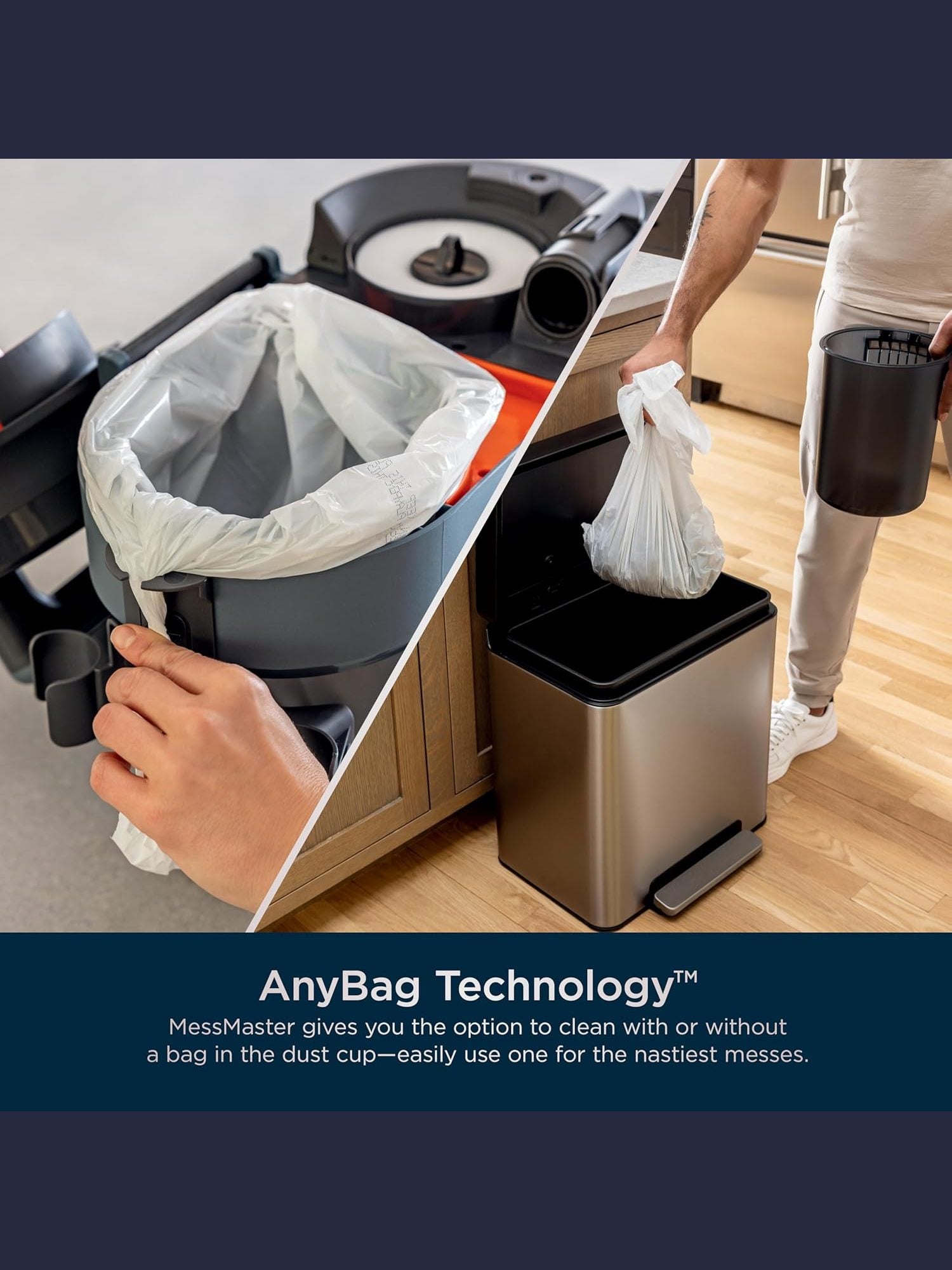 - ANYBAG TECHNOLOGY: Got a nasty mess you want to steer clear of? With AnyBag Technology, you've got the option to line the bin with any plastic bag (2-13 gallon) and vacuum straight into it. Then, just toss in the trash for easy disposal.