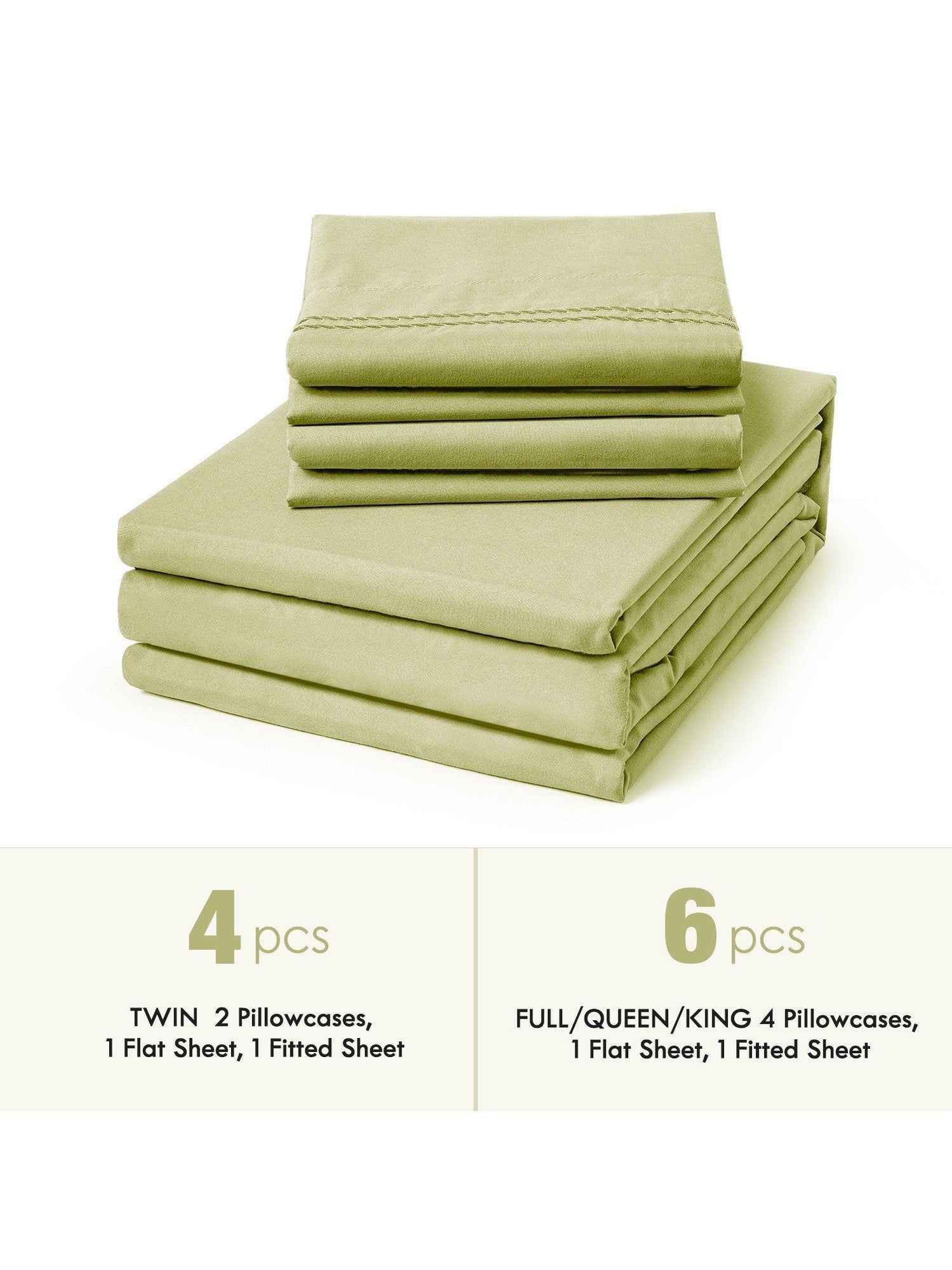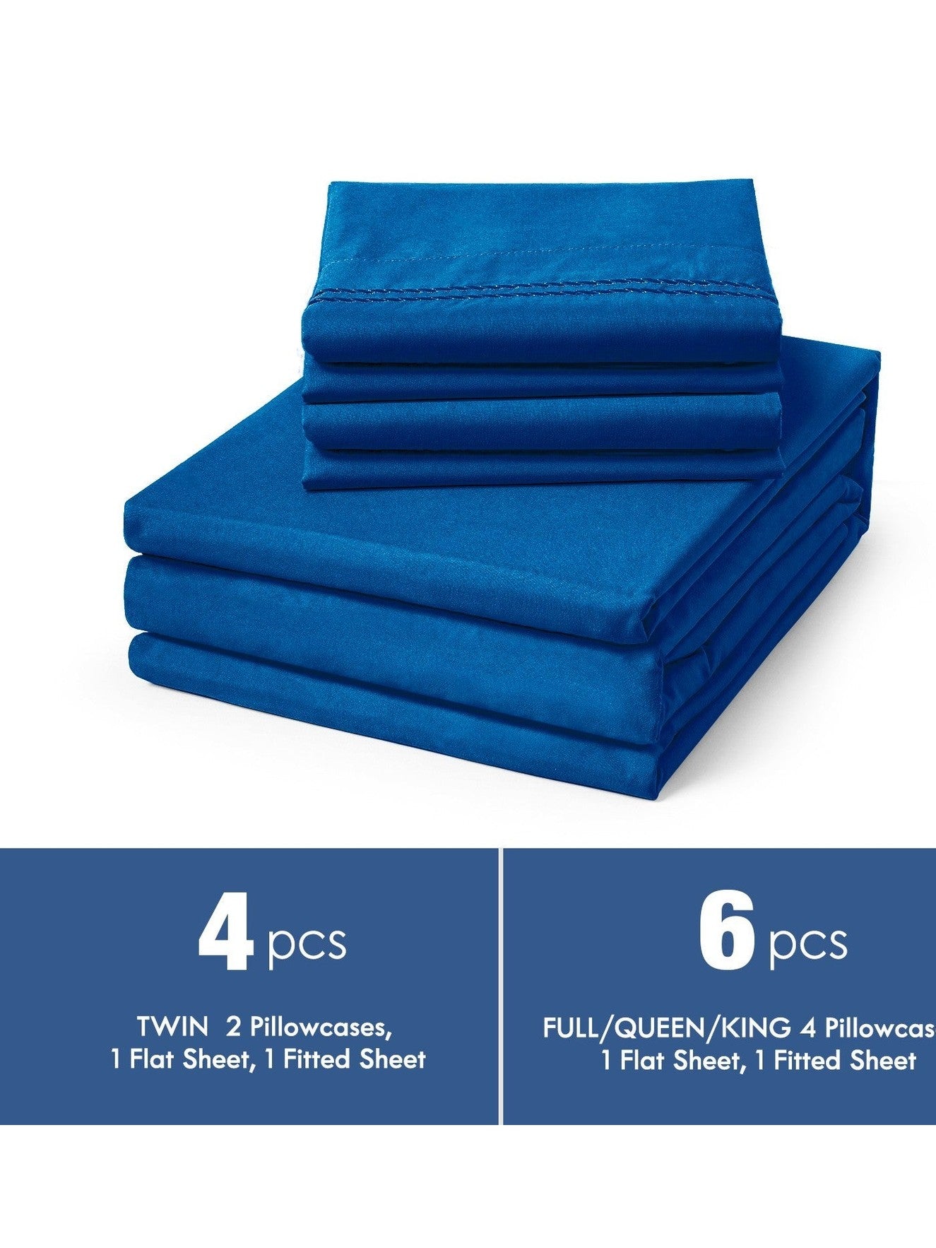 Queen 6-Piece 1 Flat Sheet, 1 Fitted Sheet, 4 Pillowcases