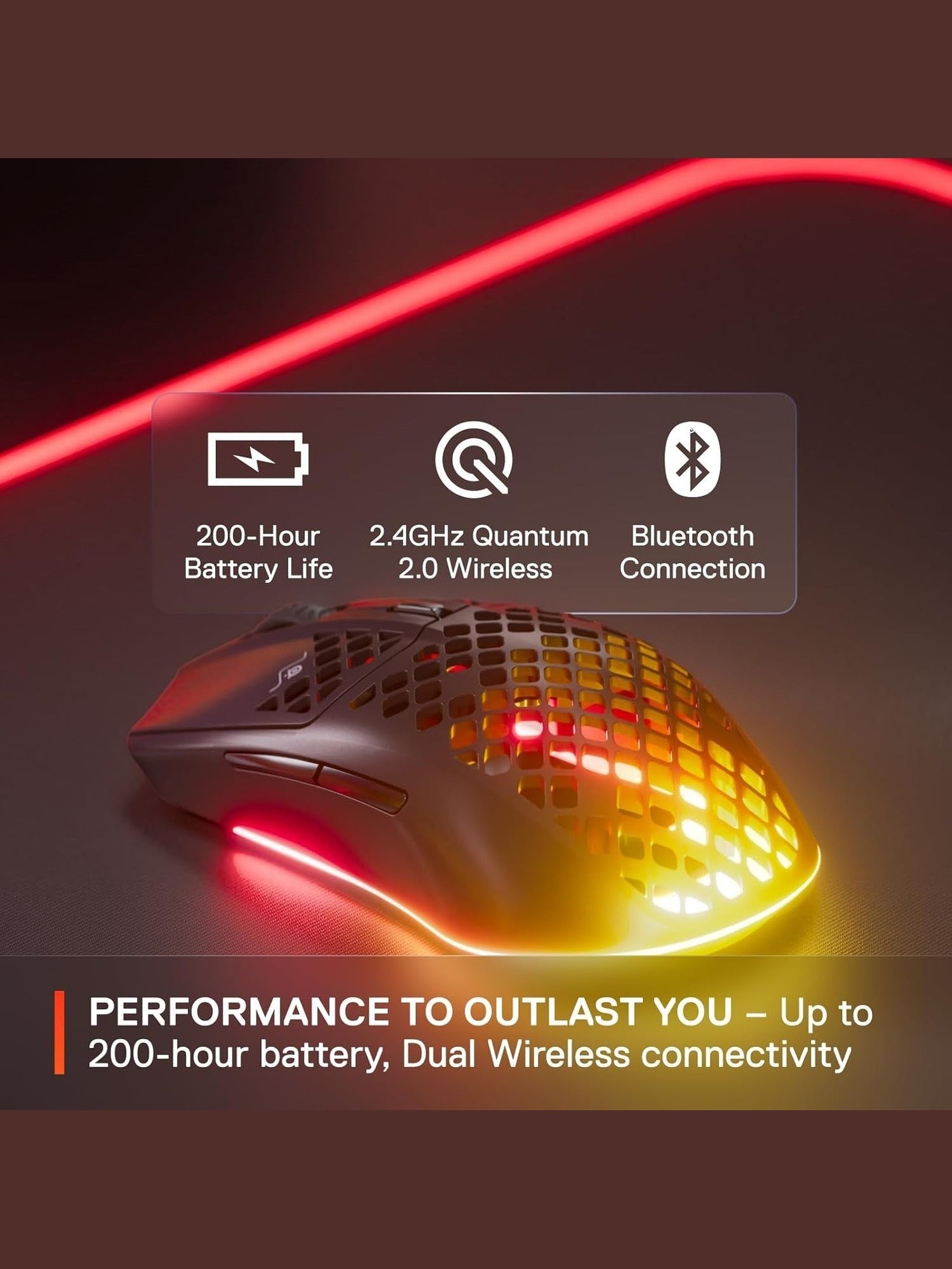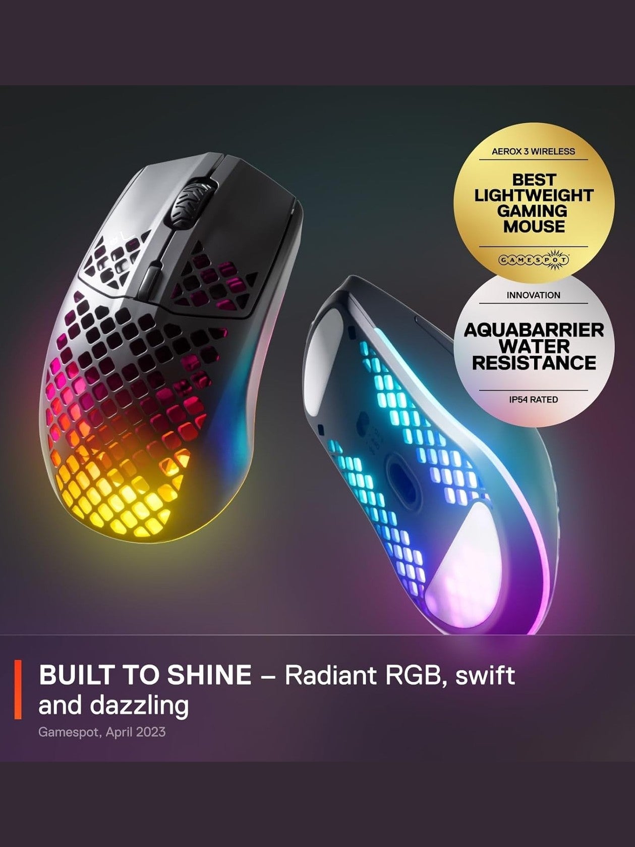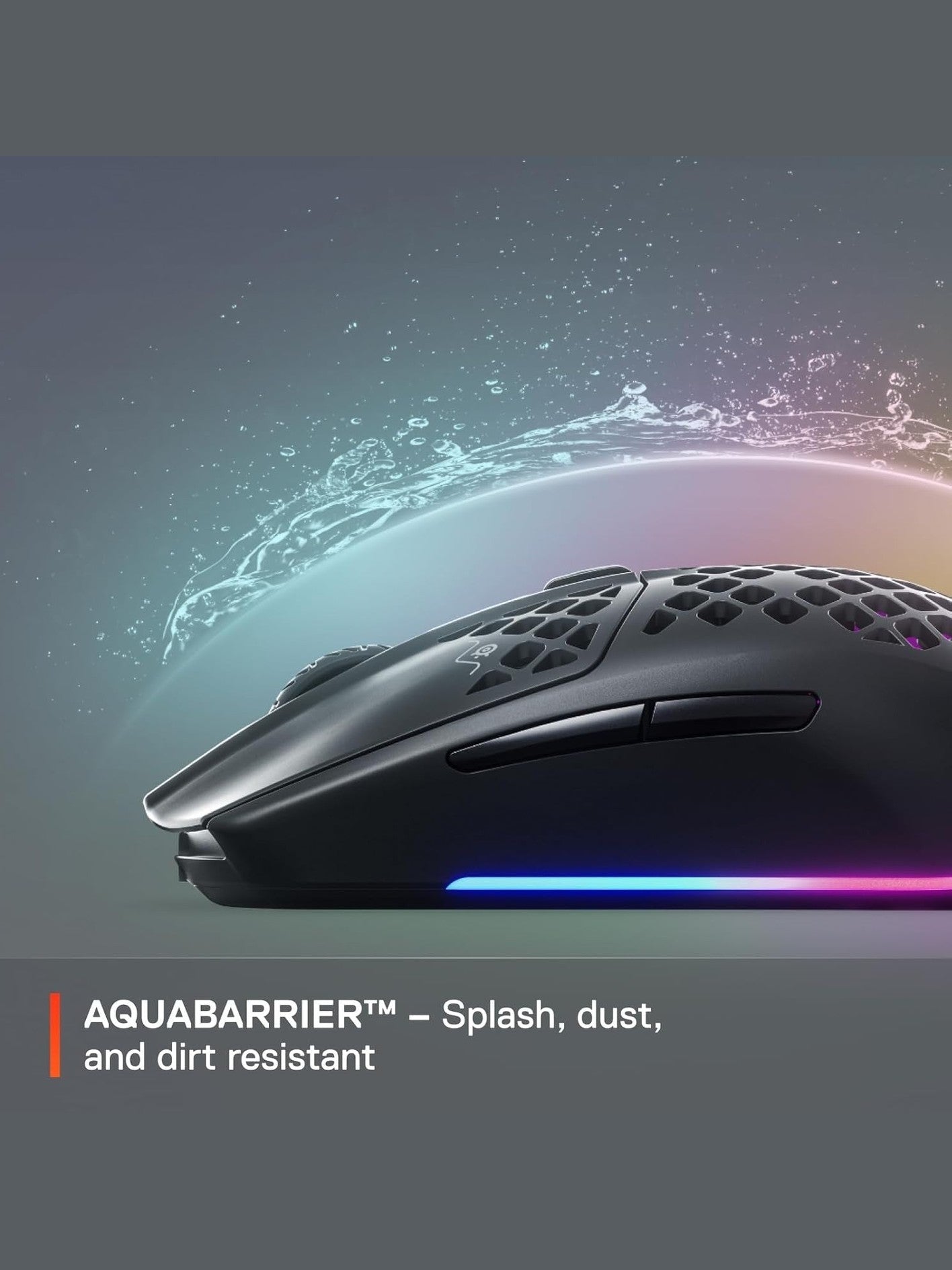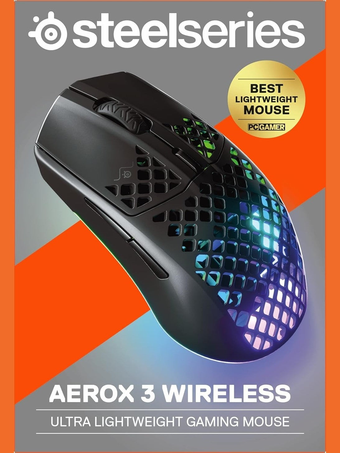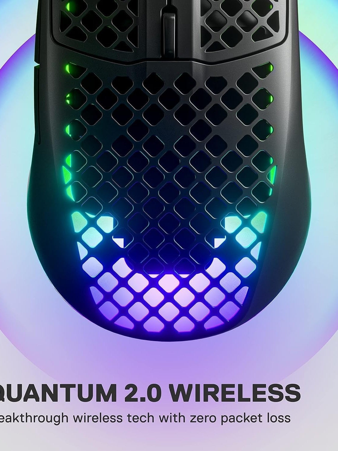 SteelSeries Aerox 3 Wireless Holey RGB Gaming Mouse - Onyx Ultra-lightweight 18K