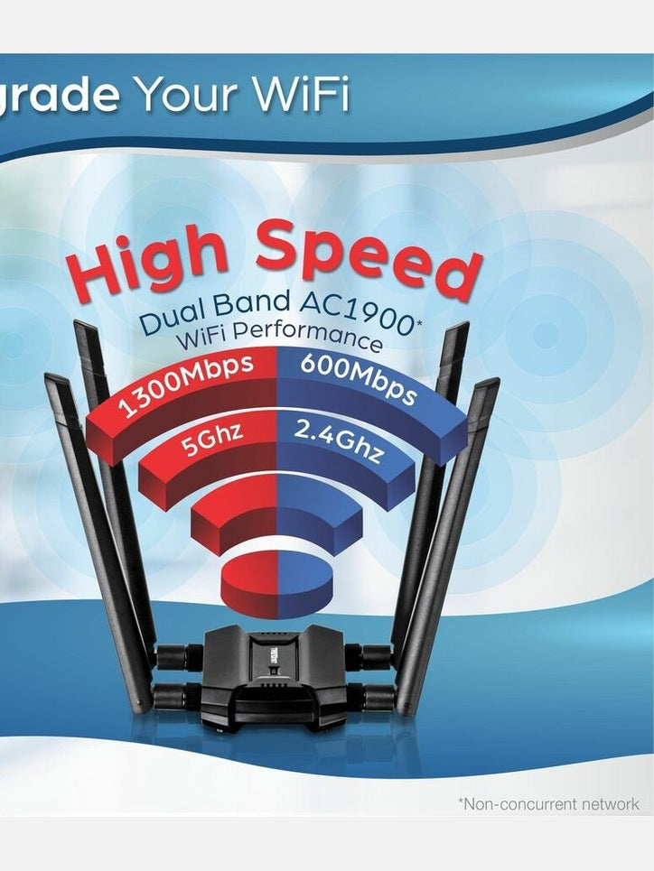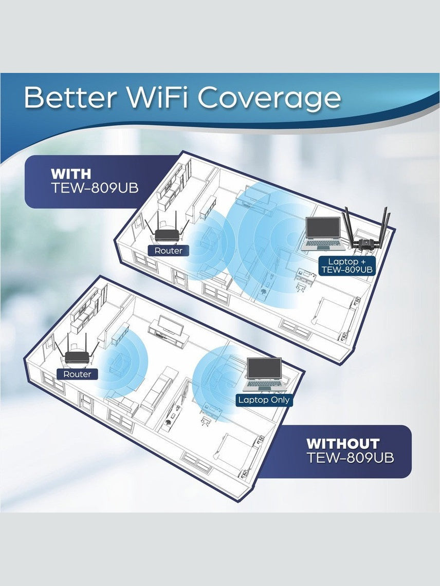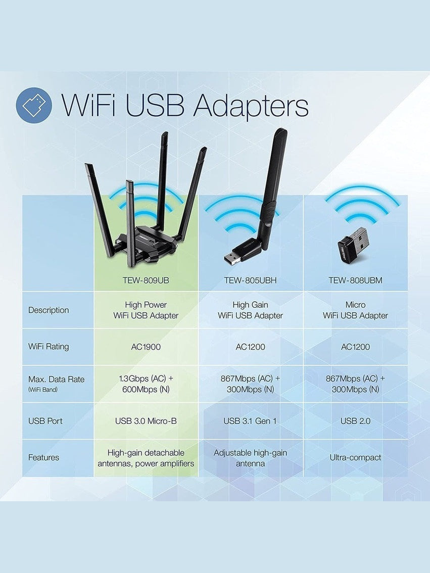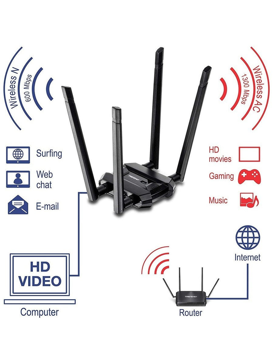 TRENDnet AC1900 High Power Dual Band Wireless USB Adapter, TEW-809UB, Stream 4K