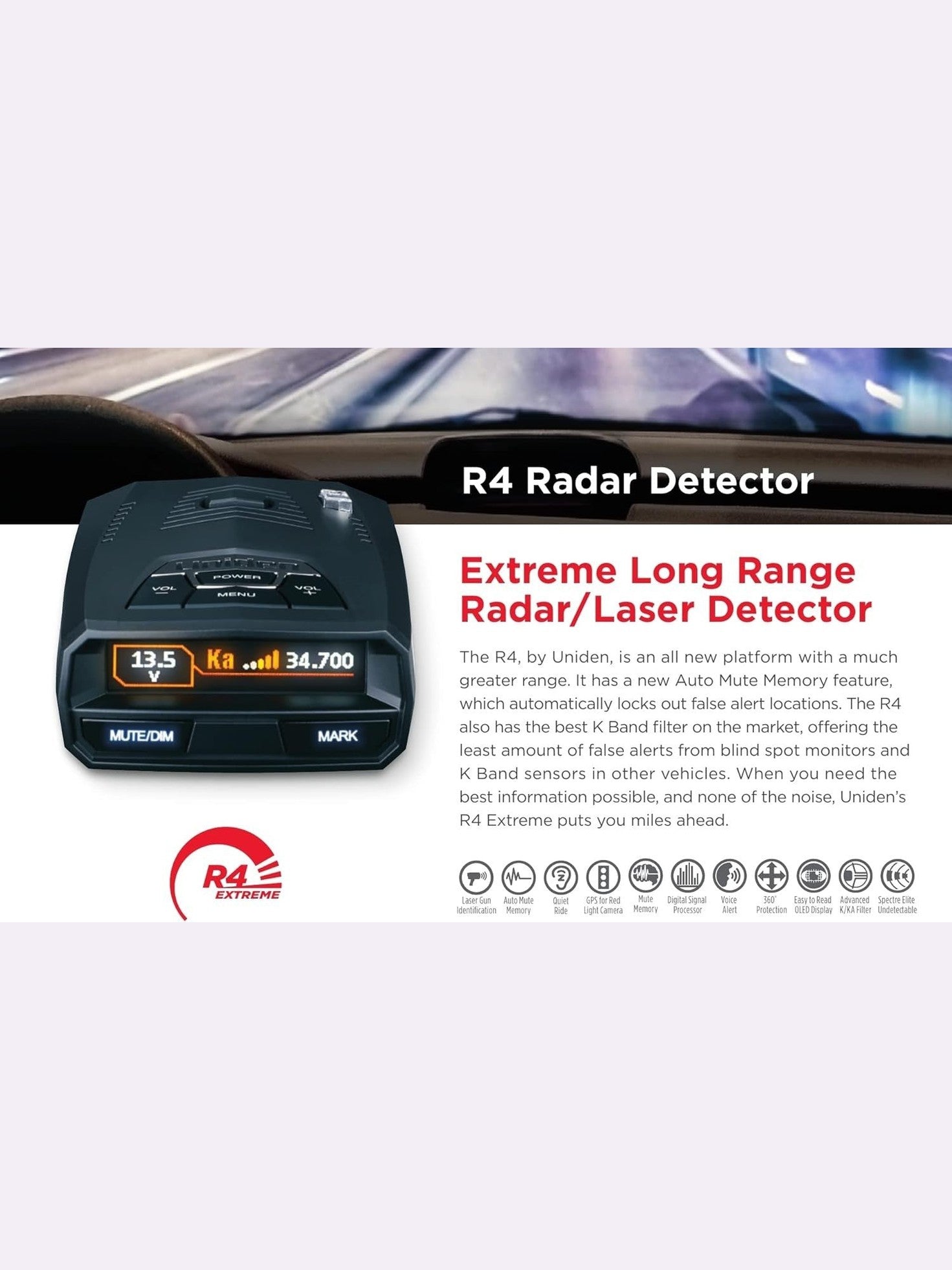 UNIDEN R4 Extreme Long-Range Laser/Radar Detector + GPS Red Light & Speed Camera