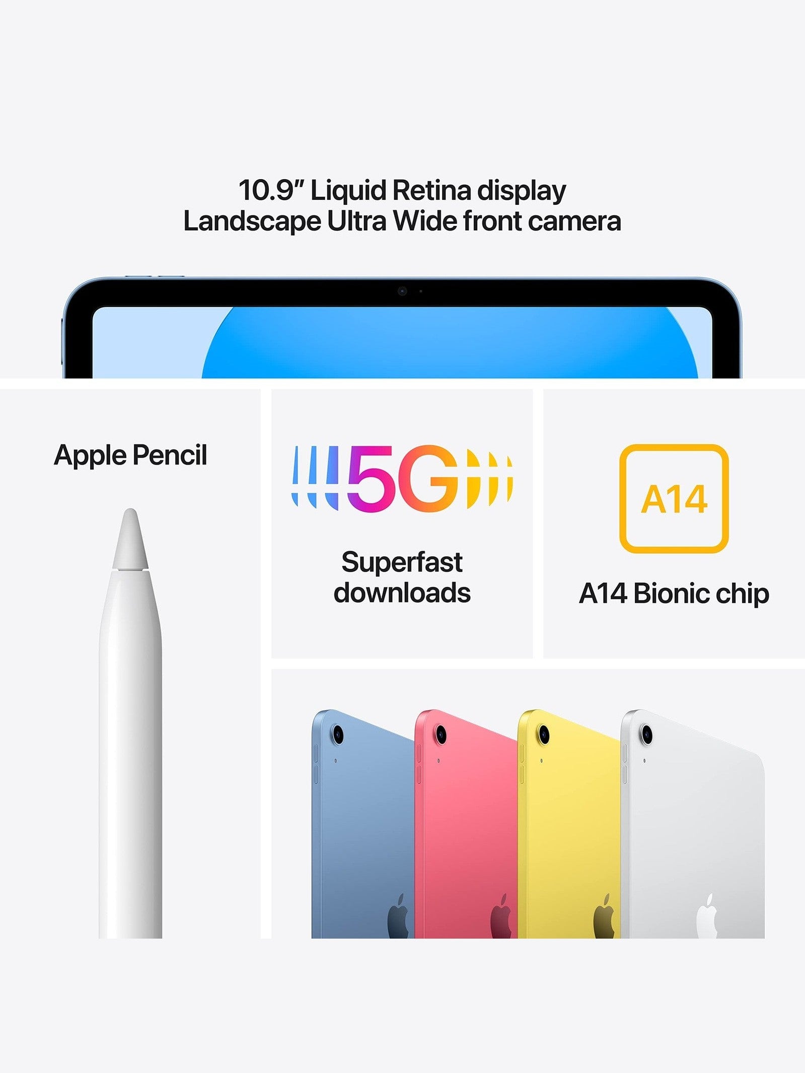256GB storage; USB-C for charging and accessories. Capacity: 256GB flash storage. Apple iPad (10th Generation) 10.9″ Wi-Fi + Cellular – 256GB – Pink (Model MQ6W3LL/A). A14 Bionic chip for fast performance and long battery life.
