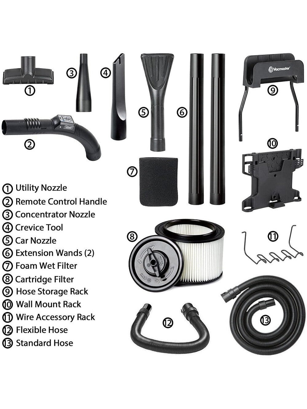 Vacmaster 5 Gallon 5 Peak HP Wet Dry Vacuum Cleaner Wall-Mounted Remote Control